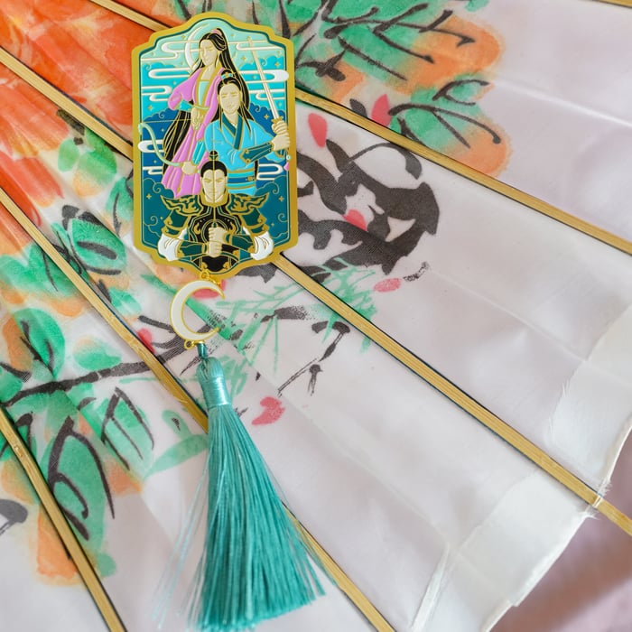Xingyin, Liwei, and Wenzhi rendered in shimmering enamel, complete with moon charm and tassel.