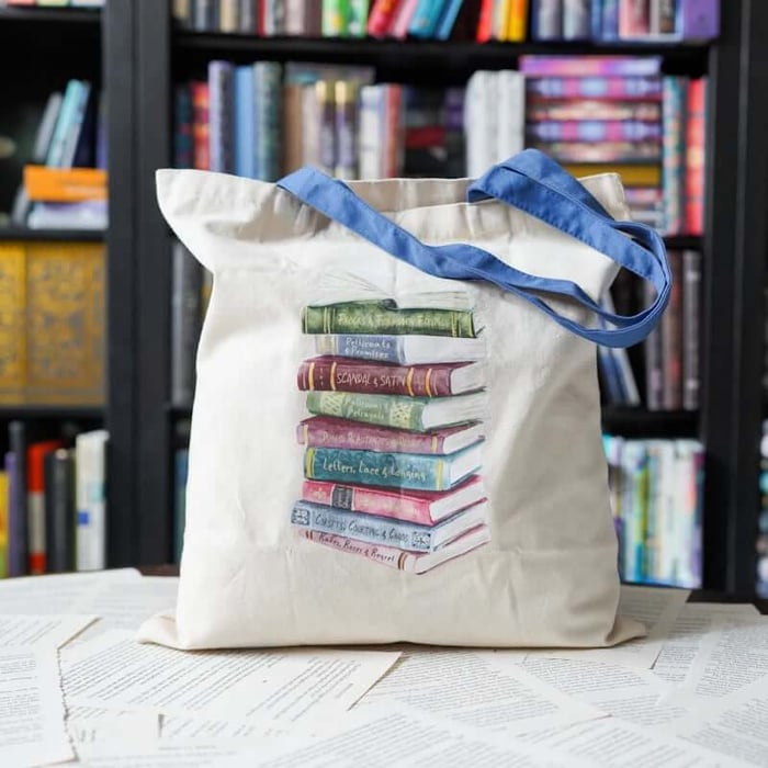 A Regency-inspired tote worthy of long walks, library hauls, and slightly dramatic departures. Carry your current read everywhere and turn errands into mini reading moments, a chapter in line, a chapter in the carpool lane, a chapter parked in the driveway long after you meant to go inside.