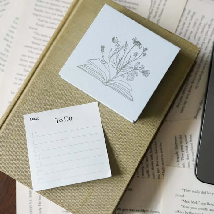 For the thoughts that arrive mid-chapter, the lists you’ll forget if you don’t write them down, and the gentle reminder that you came here to read. Write it down. Set it aside. Give your book your full attention.